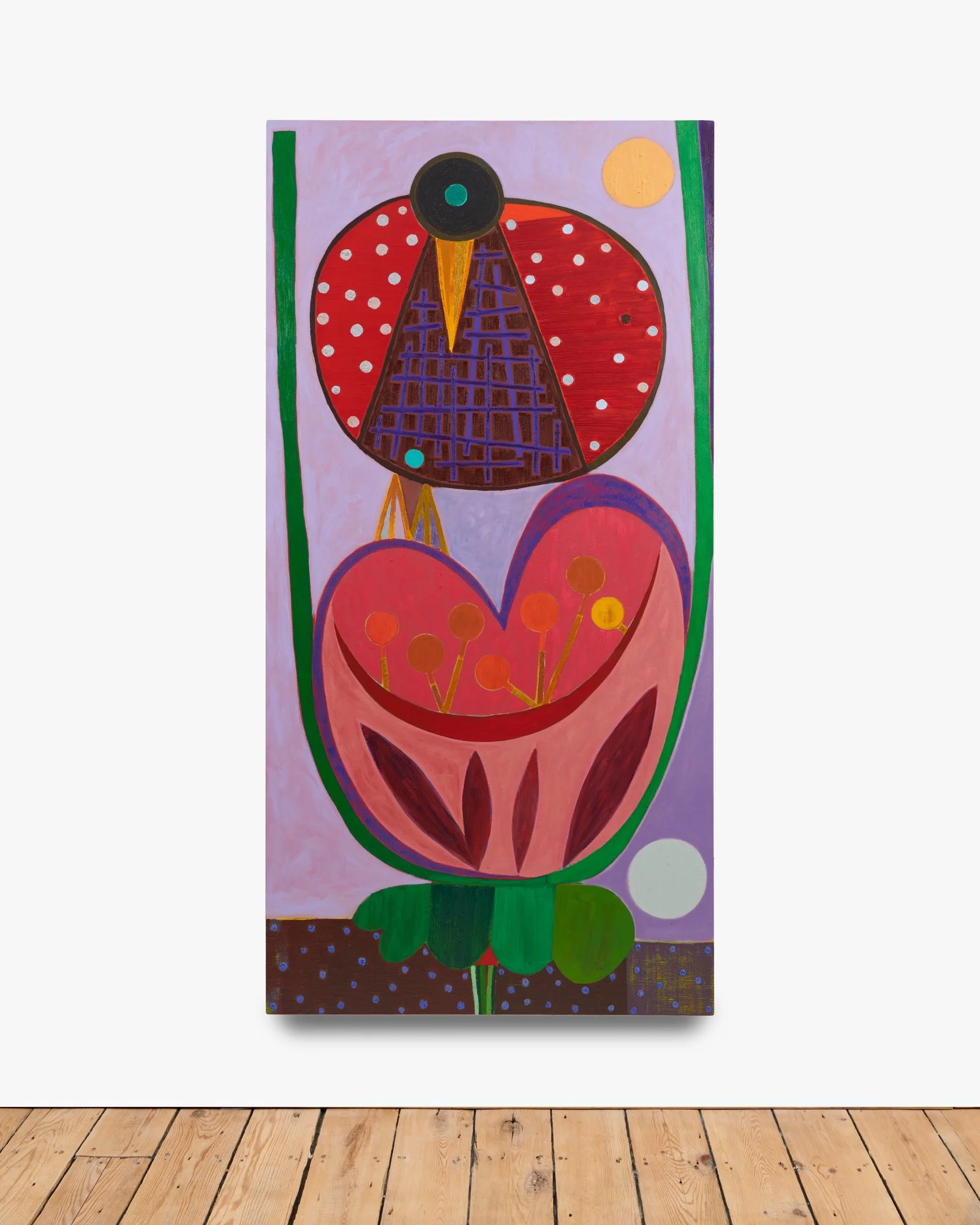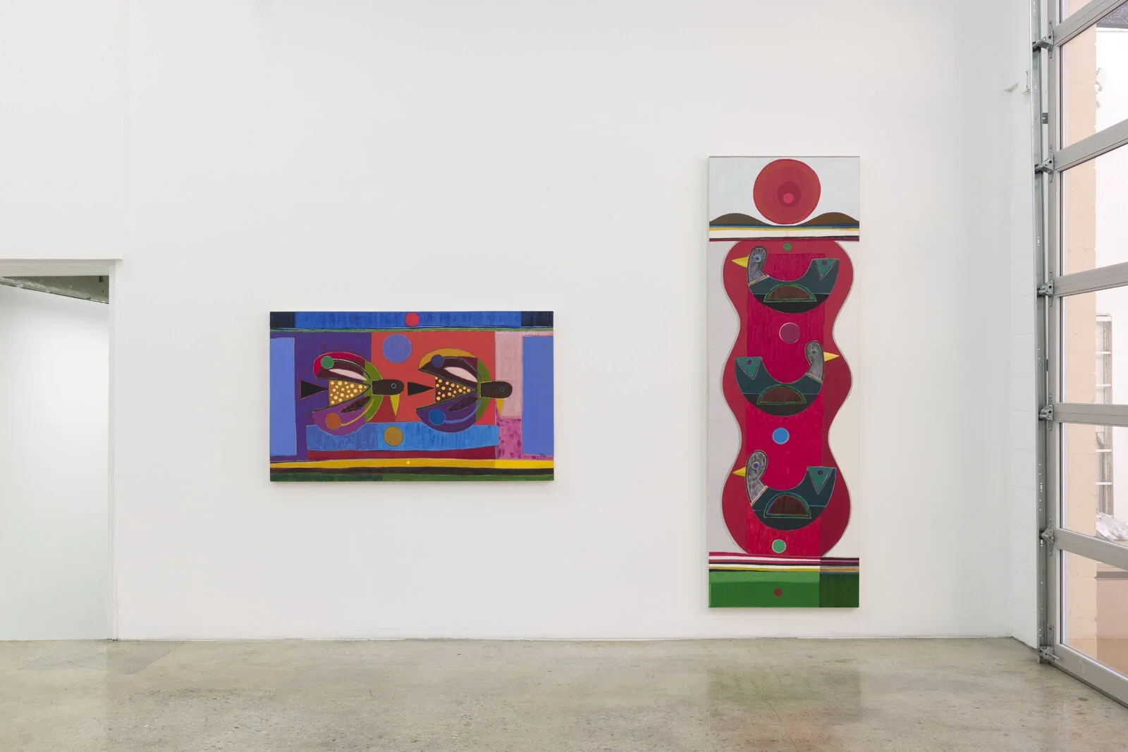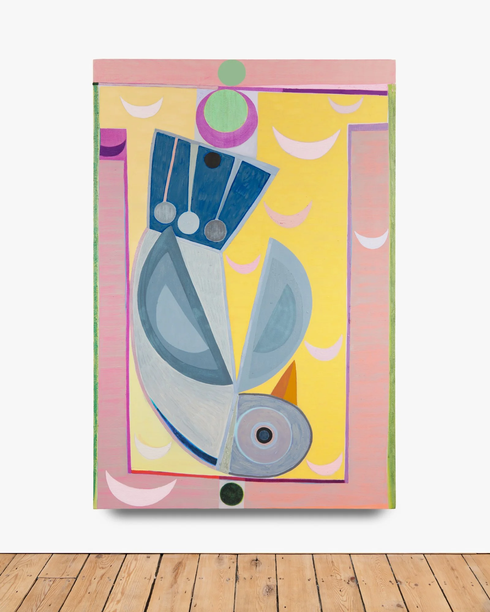 Brooklyn-based Austin Eddy’s paintings call on the viewer to create their own stories out of the ones he proposes. He might use autobiographical events and abstract them to birds, but never imposes his own interpretation. His birds are more form than animal: they are stand-ins for the very human desire for personal freedom, framed by its equally strong wish for stability and structure. As his work toes the line between figurative and abstract, it recalls the cubist forms of the 20th century, while being firmly anchored in Austin’s present.