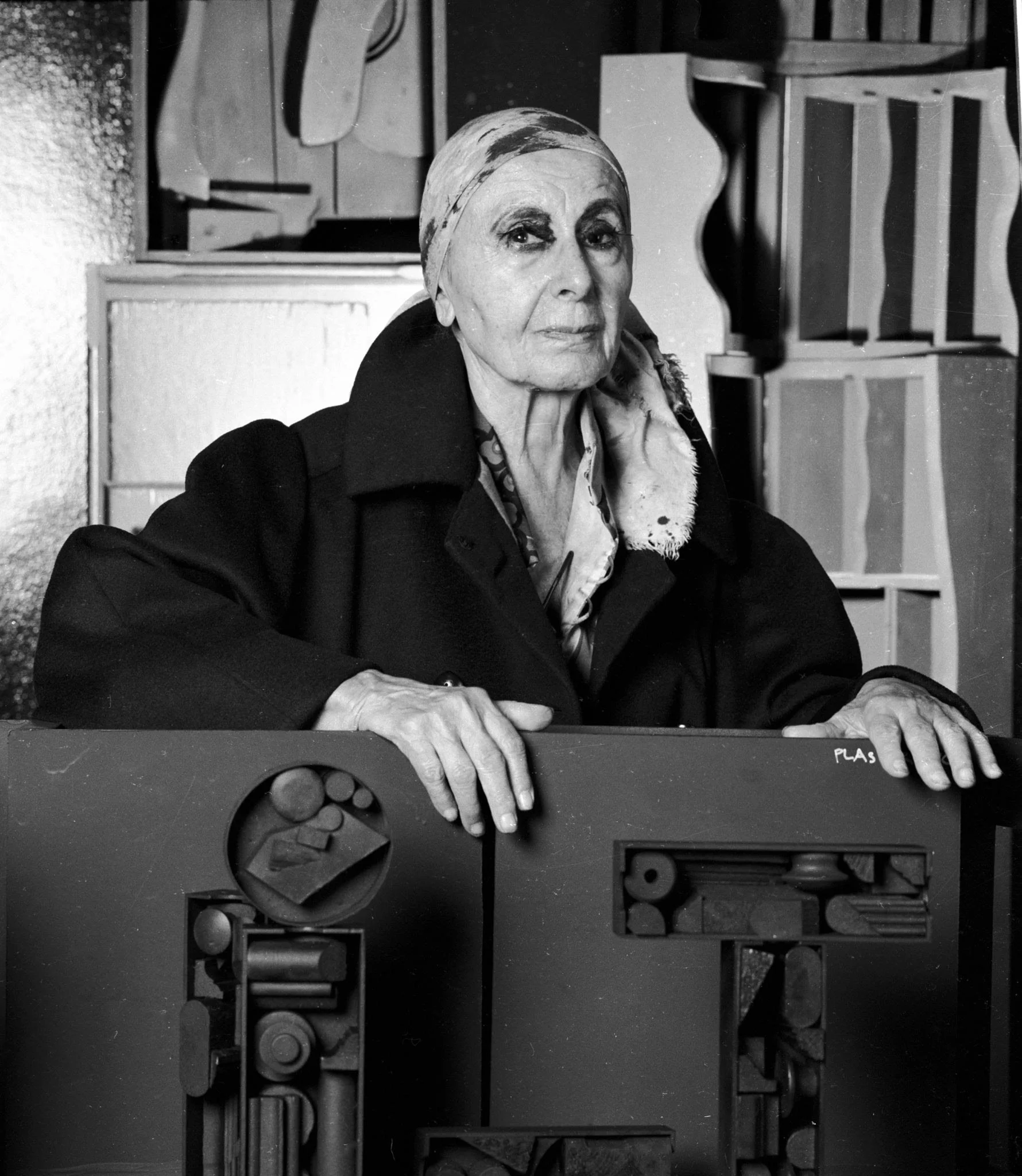 Louise Nevelson was an American sculptor known for her monumental, monochromatic, wooden wall pieces and outdoor sculptures. Born in the Poltava Governorate of the Russian Empire, she emigrated with her family to the United States in the early 20th century. Wikipedia