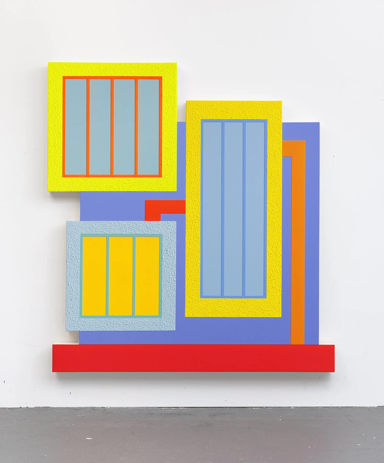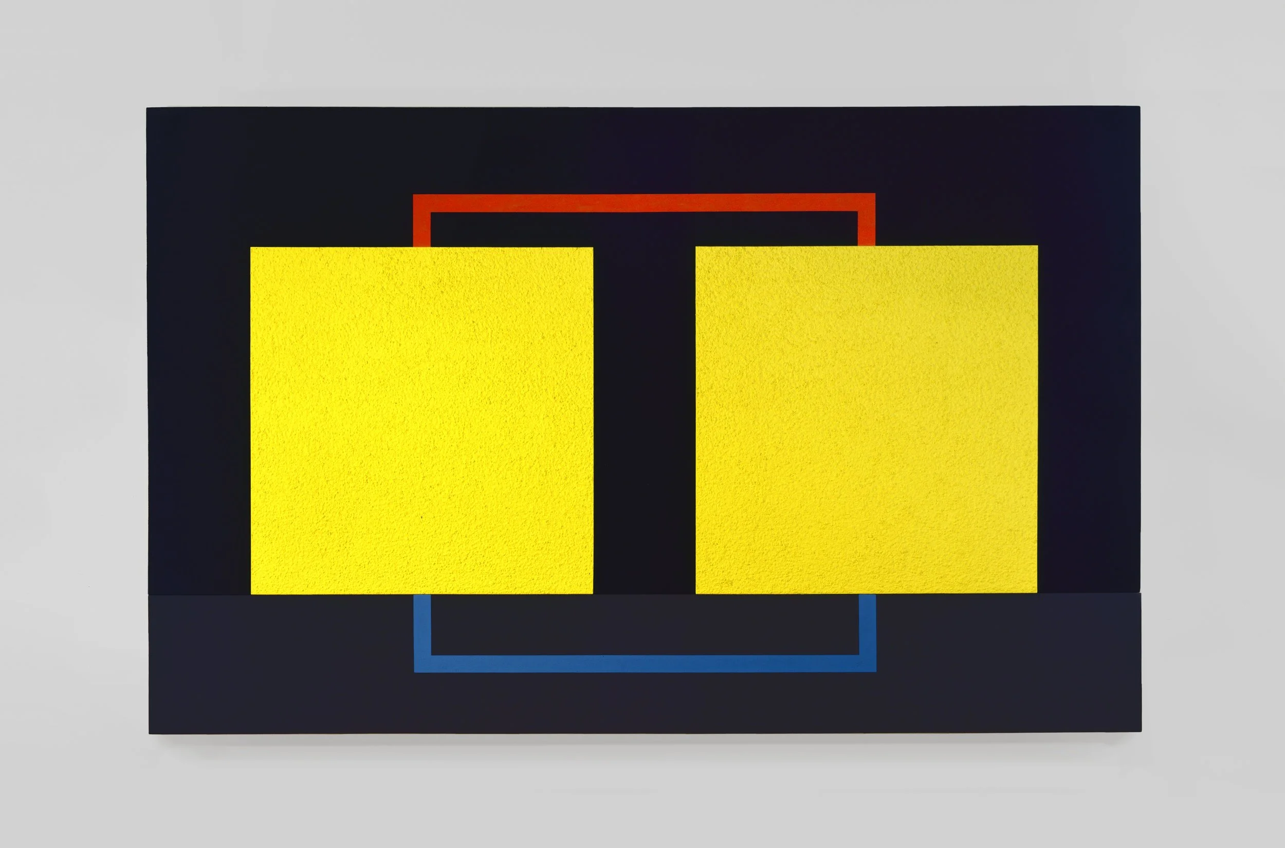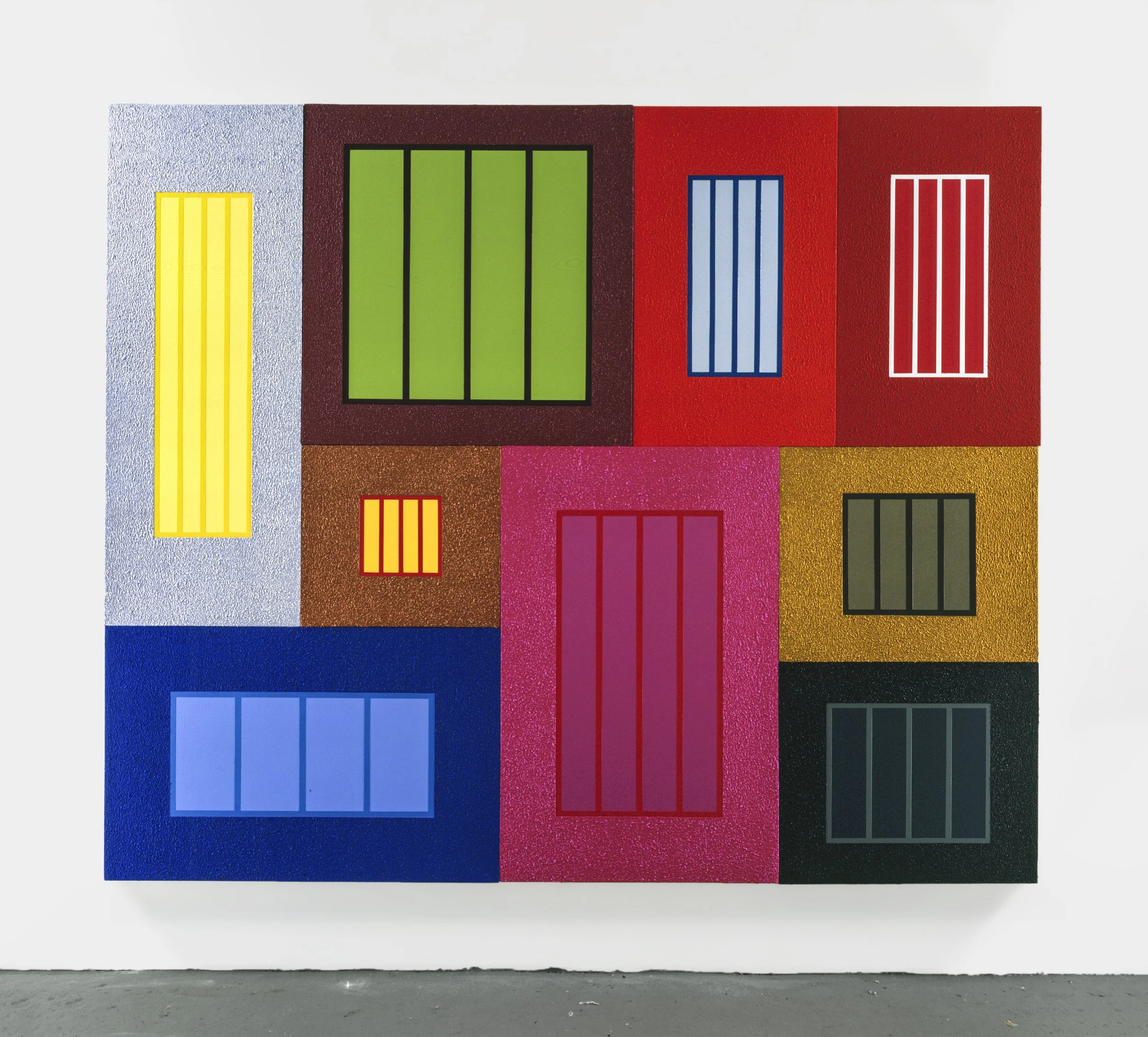 Acrylic, fluorescent acrylic, Flashe and Roll-a-Tex on canvas