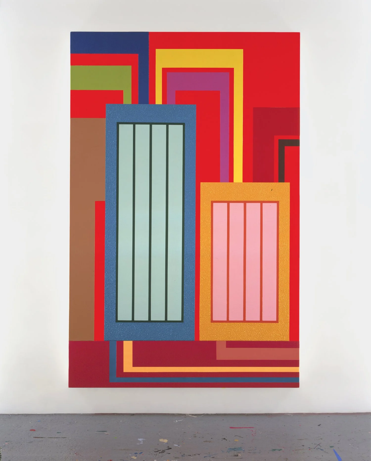 Acrylic, fluorescent acrylic, metallic acrylic, pearlescent acrylic and Roll-a-Tex on canvas