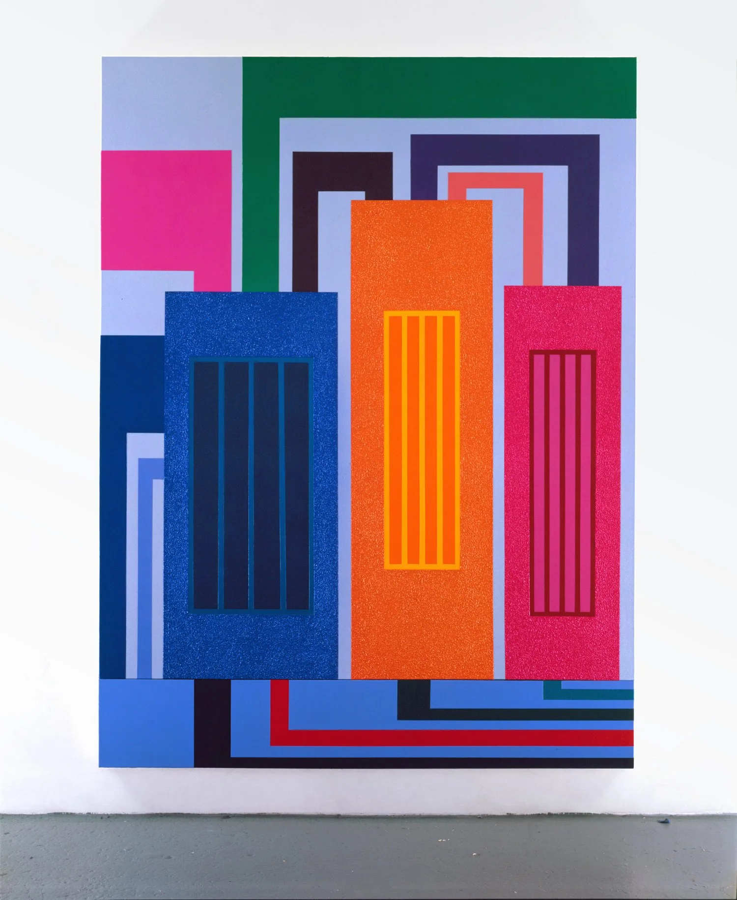 Acrylic, fluorescent acrylic and Roll-a-Tex on unprimed canvas | 70 x 80 inches