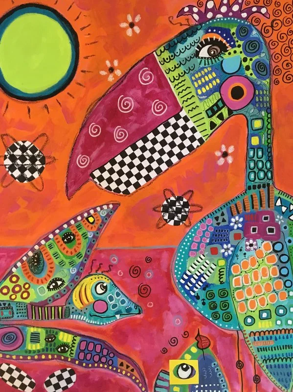 "Belly full of fish" 24" x 30" Mixed media on canvas
