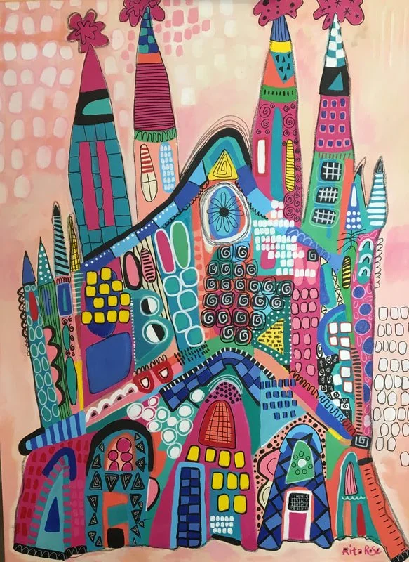 Rita is married and has two daughters in college. Her two cats, Lucky and Luna, are also big supporters of her work. She plans on showing in the Laguna Beach Arts Festival once they catch on to her progressive and playful style.